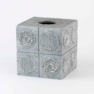 The Avanti Galaxy Decorative Tissue Box Cover features a contemporary geometric design with different silver and grey textured circles centered in textured boxed squares. Measures W 3.63" x L 5.25" x H 1.25". Made of durable, hand-painted resin. Coordinating towels, rug, shower curtain, and bath accessories also available. Makes a great update to any contemporary decor.
