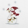 The Avanti Holiday Cheer 2-Pack Decorative Embroidered Bath Towel Set features a smiling snowman with a red, black and white striped hat and scarf and snowflakes with colorful birds at his base. The 100% cotton 27" x 50" velour towels are finished with a red polyester border. The velour finish provides a smooth, velvety feel with a subtle sheen. Coordinating towels, rug, shower curtain, and bath accessories also available.