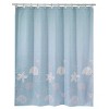 The Avanti Sequin Shells 13-Piece Shower Curtain & Hook Set features a curtain with appliqued and printed starfish and shells on a textured aqua ground. Printed on 100% polyester cloth for easy care and excellent color reproduction. 72" x 72". The hook set features 2 designs in off-white with silver highlights. Hooks made of hand-painted resin and stainless steel hooks. Coordinating towels, rug, and bath accessories also available.