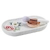 The Avanti Spring Garden Collection Vanity Tray is embossed with dimensional peonies in pink and white with green leaves on an off-white textured ground. The top is finished with a beaded molding detail. Made of durable, hand-painted resin for easy care and long life. Measures W 5.5" x L 10" x H 1.06". Coordinating towels, rug, shower curtain, and bath accessories also available.