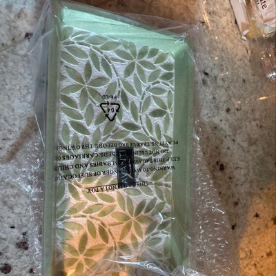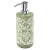 The Avanti Stratford Green 3-Piece Vanity Accessory Set features raised leaf and vine design in various shades of green with a matching top border and base. The colorful pattern stands out on the ivory ground. Made of durable, hand-painted resin (lotion dispenser pump is plastic). Set includes 1 each of lotion dispenser (W 3.0" x L 3.0" x H 8.0"), jar (W 4.0" x L 4.0" x H 5.0"), tray (W 5.5" x L 10.0" x H 1.0"). Other matching accessories available.