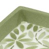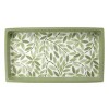 The Avanti Stratford Green Vanity Tray features a raised leaf and vine design in various shades of green on the inside with a matching green outside border and base. The colorful pattern stands out on the ivory ground. Made of durable, hand-painted resin for easy care and long life. Measures W 5.5" x L 10" x H 1". Other matching accessories available.