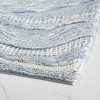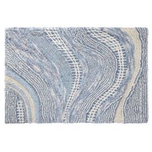 The Avanti Waves Blue Bathroom Rug features a marble-look wavy pattern in light blue, dark blue and white. Hand-tufted of 100% cotton with space-dyed yarns. This heavyweight rug feels as great as it looks. Measures 20" x 30" with a non-skid latex back. Coordinates with the Waves bath accessory group.