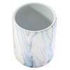 The Avanti Waves Blue Wastebasket features a multi-color marble-look design in shades of blue, brown and white. The decal is applied randomly on the ceramic base, so each piece is unique. Perfect for bathroom, bedroom or office. Other coordinating accessories available. Measures W 8" x L 8" x H 10". Other matching accessories available.