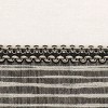 The Avanti Weston White Bath Towel features a black woven fabric border with horizontal irregular shimmering silver stripes. A coordinating black and ivory flat braid is attached at the top hem. The 27" x 50", 100% cotton white towel is sheared for a silky, smooth finish. The velour finish provides a smooth, velvety feel with a subtle sheen.