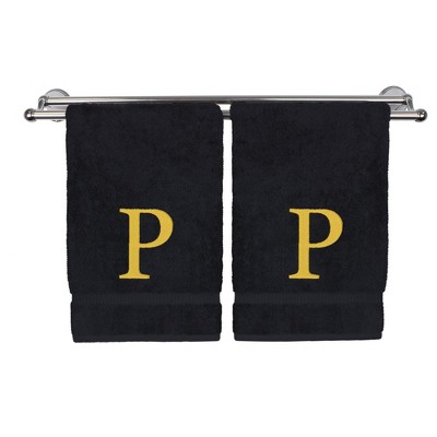 The Avanti Scroll "P" Monogram Fingertip Towel features a stylized script capital letter "P" accompanied by a decorative scroll underneath. The 11" x 18" 100% cotton velour white fringed towel is the perfect background for the metallic pewter design. The velour finish provides a smooth, velvety feel with a subtle sheen. Other letters available.