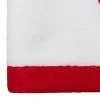 The Avanti Sparkle Decorative hand towel features an embroidered red Christmas tree with silver accents, white snow and a silver star on top. The 100% cotton white velour towel is finished with a coordinating red woven polyester border. 16" x 28", machine washable. The velour finish provides a smooth, velvety feel with a subtle sheen. Coordinating towels, rug, shower curtain, and bath accessories also available.