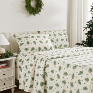 The Spode� Christmas Tree 4-Piece Queen Sheet Set features the iconic Christmas Tree with ornaments and presents tossed in repeat surrounded by holly leaves and berries on a cream ground. Printed on 100% polyester. Set includes flat, 15" deep fitted sheets and 2 pillow cases.
