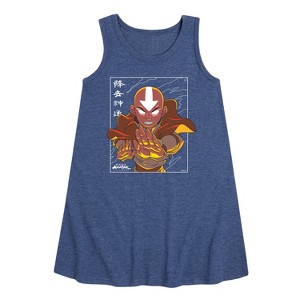 Girls' - Avatar - The Last Airbender - Avatar State Aang Graphic Sleeveless Aline Dress - 1 of 4