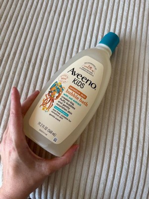 Gently cleanse your child's developing skin & make bath time more fun with Aveeno Kids Bubble Bath with Oat Extract. Specially designed for kid’s developing & sensitive skin, this bubble bath from Aveeno, a pediatrician- & dermatologist-recommended skincare brand for over 70 years, is designed to be gentler than adult products for kids' developing skin. The nourishing, foaming formula with oat extract creates big, fluffy bubbles to care for your little one's skin, leaving their skin feeling soft & moisturized. Formulated without parabens, phthalates, sulfates, & dyes, the bubble bath has a light fragrance that's known to be as gentle on sensitive skin as fragrance-free products. Aveeno Kids Bubble Bath is a perfect addition to your child's bath routine & washes off thoroughly. The bubble bath is gentle enough for your child's dry skin & soothes sensitive skin. For fluffy bubbles, pour two to three capfuls of this bath liquid under water while swirling with your hands.