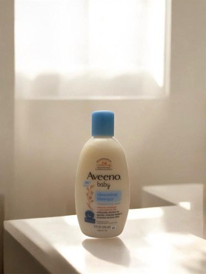 - Bottle of Aveeno Baby Cleansing Therapy Moisturizing Baby Bath Wash for eczema-prone skin