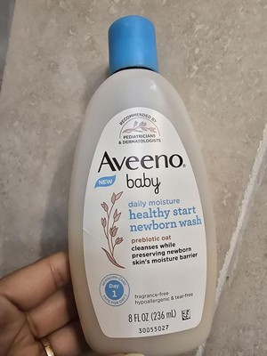 - Aveeno Baby Daily Moisture Healthy Start Newborn Wash with prebiotic oat for gentle infant skincare