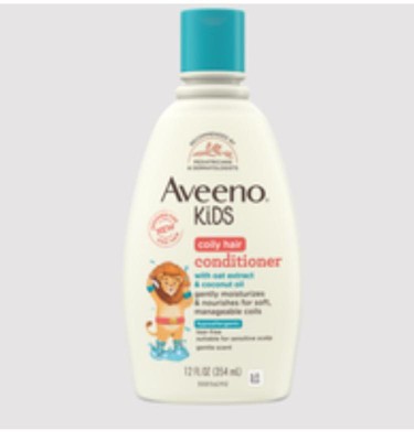 - Aveeno Kids Coily Hair Conditioner to gently detangle and moisturize coils and curls