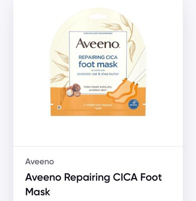 Aveeno repairing foot mask is my favorite part of foot care. It’s packaged individual with makes it easy. Lives my feet moisture and hydrating.