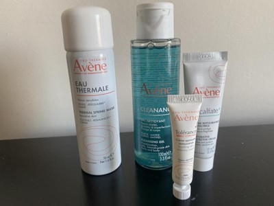 Discover Avène's Dermatologist recommended solutions for sensitive skin. A complete Target Exclusive Sensitive Skin Starter Kit with Avène's bestselling products Cleanance Cleansing Gel (3.3 fl. oz), Avène Thermal Spring Water (1.6 fl. oz) Cicalfate+ Restorative Protective Cream (0.5 fl.oz), and Tolerance Control Soothing Skin Recovery Cream (0.1 fl.oz). Clinically proven skincare to cleanse, soothe, restore and calm skin.