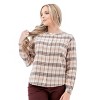 This is my favorite plaid shirt because the collar is flattering. I bought the black and cream.