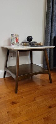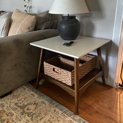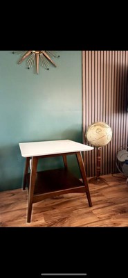 Avenu End Table - Off White/Pecan: Madison Park, Mid-Century, Oak Veneer Shelf, Square Shape