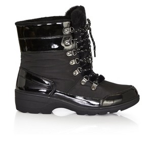 Rain or shine, the Belinda Cold Weather Boot is always a fabulous choice. Finished with a weather-resistant outer for all-day warmth and comfort, these glossy boots feature a wide-width fit and plush faux fur lining.Key Features Include:- Round toe ankle boot- Wide width fit- Lightly padded Cloudwalkers insole- Lace-up suspender closure- Weather-resistant outer with glossy patent contrast- Plush faux fur lining for warmthStyle with a fashion tee, parka and denim jeans for a fierce finish.All man made materials.WIPE CLEAN WITH DAMP CLOTHImported.