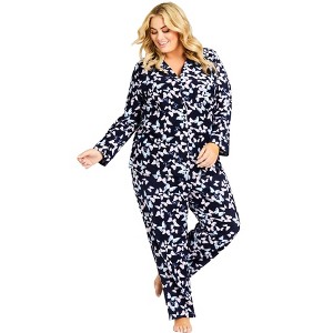 So fresh and feminine, get all cozied up in the beautiful butterfly print of the Butterfly Button Fleece Sleep Top. Soft and snug, stay warm on those colder nights with a plush fleece finish.Key Features Include:- Lapel collar neckline- Full-length sleeves- Button-front closure- Soft, fleecy finish- All-over butterfly print- Single front pocket detail- Non-stretch fabrication- Relaxed fit- Hip length hemlineIndulge your curves with the warm comfort of the matching Butterfly Fleece Sleep Pant.100% Polyester. Fabric has slight stretch.MACHINE WASH COLD, INSIDE OUTImported.