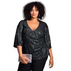 Avenue Faux Wrap Sequin Top - 1 of 2