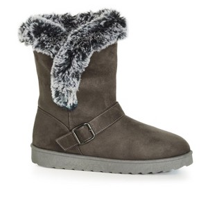 Introducing the Porcha Hug Boot - your cozy companions for cold days. With a round toe and faux-fur inner and lining, these boots are like a warm hug for your feet. The front cross strap with a buckle adds a touch of style, and crafted from faux-suede with a thick sole, they're ready to take on winter with both comfort and flair.Key Features Include: - Round toe- Faux-fur inner and lining- Front cross strap with buckle- Faux-suede fabrication - Thick solePop these on when you want to cozy up at home in your loungewear.100% Man Made Materials.WIPE CLEAN WITH DAMP CLOTHImported.