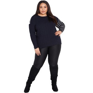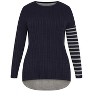 Dream about the comfortably chic styles the Sandy Sweater delivers. With soft stretch fabrication, color blocked front and back and a pull on design, bring a cozy touch to your everyday rotation with this sweater. Key Features Include:- Wide round neckline- Full length ribbed sleeves with stripped design- Color blocked front and back- Soft stretch knit fabrication- Hip length hemline- Pull on designFor an extra layer of warmth, team with a longline cardigan.Body & Sleeves: 50% Viscose 28% Polyester 22% NylonMACHINE WASH WARM, DO NOT BLEACH, LINE DRY, LIGHT IRON, DO NOT DRY CLEANImported.