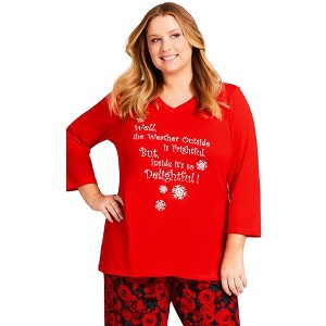 Even the frostiest of nights won't stand between you and snoozing in the Slogan Sleep Top. Featuring a relaxed, V-neckline fit sure to keep you warm, this season-inspired sleep top is perfect for cuddling up by the fire. Key Features Include:- V-neckline- 3/4 length sleeves- Relaxed pull-on fit- Lyric slogan print with silver foil snowflakes- Straight hemline at kneesPair with cozy slippers and an oversized sweater for toasty comfort all night long.60% Cotton, 40% Viscose. Fabric has stretch.MACHINE WASH COLD GENTLE CYCLE DO NOT BLEACH TUMBLE DRY LOWImported.