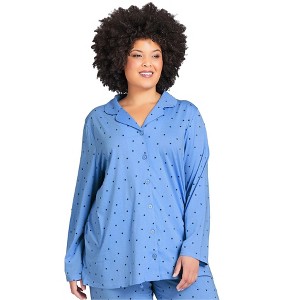 Be starstruck in your dreams curled up in the soft warmth of the Button Star Sleep Top. Perfect for those frosted nights, button up into this comfortable sleep top for an out of this world sleep experience.Key Features Include:- Rounded collar neckline- Full-length sleeves- Button-front closure- Star print- Relaxed fit- Easy wear, easy care fabrication- Hip length hemlinePaired with the Movie Night Sleep Pant in blue star, aim for the stars.60% Cotton, 40% Viscose. Fabric has some stretch.MACHINE WASH COLD GENTLE CYCLE DO NOT BLEACH TUMBLE DRY LOWImported.