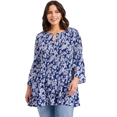 Avenue Color Block Hem Top - 26/28, Ultra Blue Pretty Flower