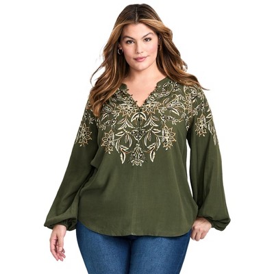 Avenue Embroidered Lace Detail Peasant Blouse - 1 of 4