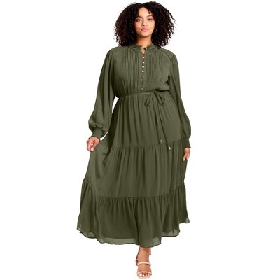 Make an elegant impression in this fit-and-flare midi dress, designed with a flattering V-neckline and pleated waist detail. The long sleeves and flowing skirt offer graceful movement and comfortable coverage. Perfect for special occasions or polished everyday wear..