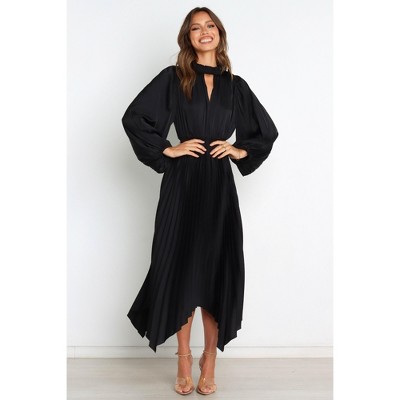 • A: The dress has full length sleeves with shirred cuffs for a stylish touch.