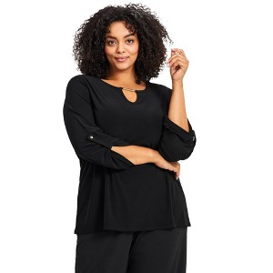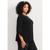You'll love the pretty chain detail at the keyhole neckline. This top features a flattering relaxed fit. The 3/4-length sleeves with button-tab accents add a polished touch, making it perfect for day to night look. Pair it with wide-leg pants or your favorite jeans for effortless style.