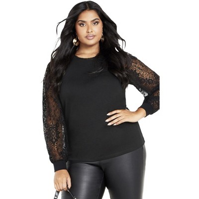 Avenue Lace Crewneck Tee - 22/24, Black Floral Lace