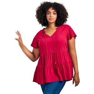 Avenue Lani Flutter Sleeve Tiered Top - 1 of 4