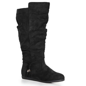 Step out in a classic meets modern take with the Kendra Tall Boot. Featuring faux-suede fabrication, a rounded toe design and subtle scrunch detailing, these boots achieves style goals with ease and versatility. Key Features Include: - Rounded toe- Subtle scrunch detailing- Faux-suede fabrication- Side zip closure- Plait detail with beaded tassel- Slight heelLove a cool style and wear with a fitted dress, topped off with a faux leather jacket.100% Man made materialsWIPE CLEAN WITH DAMP CLOTHImported.