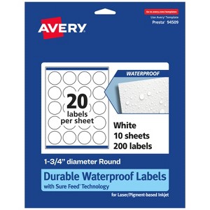 Avery Durable Waterproof Round Labels with Sure Feed, 1.75" diameter