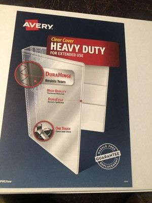 This Heavy-Duty View Binder with One Touch rings is perfect for extended use. From everyday referencing to classroom notes and home business use this binder's strong enough to handle them all. The DuraHinge design is stronger, lasts longer and resists tearing, while the DuraEdge feature makes the sides and top more pliable to resist splitting. Our deep texture film offers a smoother finish and features a linen pattern for high quality look and feel. Just pull the lever to open the rings for adding, replacing and removing pages. Then push to lock the rings in place. Customize the cover with free, easy-to-use templates and designs at avery website/print.