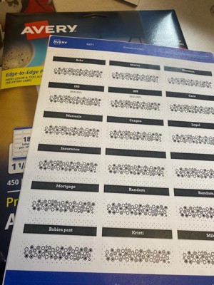 [This review was collected as part of a promotion.] I really prefer Avery brand labels. I use them at work for different projects. I’ve used them for years. Their website has different templates for each style. It’s labeled on the package. This design I got on the website. I am using these to label the folders in my filing cabinet at home. I really like. And of course I will purchase again.