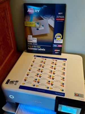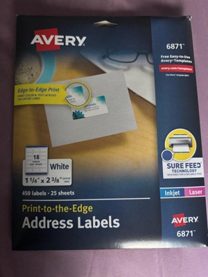 - Avery 6871 Labels feature proprietary Sure Feed(R) technology to deliver a more reliable feed through your printer, preventing misalignments and jams