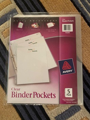 Avery Binder Pockets, 3-Hole Punched, durable, see-through pockets keep binders neatly organized. Includes 5 binder pockets and is ideal for long-term storage, non-stick polypropylene is acid-free and archival-safe for maximum protection. Each pocket holds up to 20 insert sheets and allows you to store papers in a 3-ring binder without punching or folding.