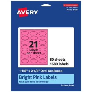 Design your own high-visibility labels with vibrant, bright colors with Avery Bright Pink Oval Scalloped 1-1/8" x 2-1/4" Labels. Created with brilliantly eye-catching bright pink label material, these vivid labels will immediately grab people's attention so that you can easily make your own food labels, jar labels, packaging labels, and more! The bright color is perfect whether you need to create warnings, organize inventory, or make sure your product labels stand out on a shelf. Sure Feed technology reduces printer jams by creating a more reliable feed through your printer. The print-to-the-edge layout allows you to create full-bleed artwork that allows the bright label color to peek through gaps in your design and it also lets you add in borders that fill the edges without any empty spaces.