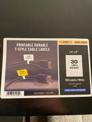 Avery Cable Labels, T-Style, 1.25" x 2", 300 Total 61539