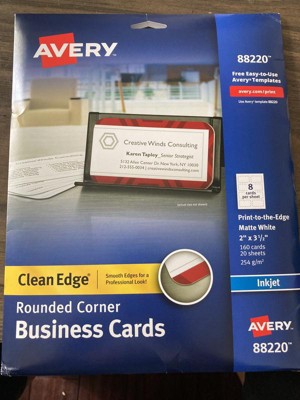 Avery Clean Edge Printable Business Cards with Sure Feed Technology, Rounded Corners, 2" x 3.5", White, 160 Blank Cards for Inkjet Printers 88220