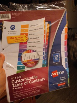 Organize your projects in moments with Avery Ready Index 12-tab dividers. Each tab is preprinted and uniquely color coded for a professional appearance. Print your own custom section titles and images onto the table of contents sheet without worrying about labels or inserts. Try out free templates for these dividers and check out the Avery Design & Print software on the Avery website. Whether you're creating planners for classes or hosting a presentation, these 3 sets of 12 dividers are ideal for getting everything sorted.