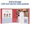 - Wider front and back binder panels fully cover standard dividers and sheet protectors.