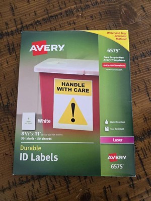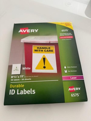 Avery Durable Permanent ID Labels with TrueBlock Technology, Laser Printers, 8.5 x 11, White, 50/Pack
