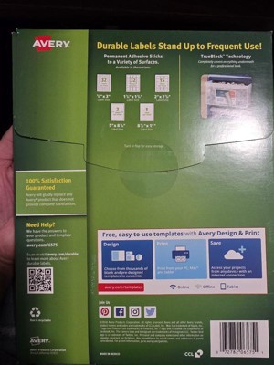 These white permanent durable ID labels with TrueBlock technology will make ownership of office supplies clear. The TrueBlock Technology completely covers everything underneath, so you can re-identify items with ease. You can customize the labels for just about any use with free templates from Avery Design & Print. Print labels from your laser printer with sharp text and adhere them to paper, glass, plastic, metal and more.