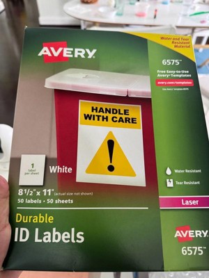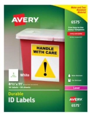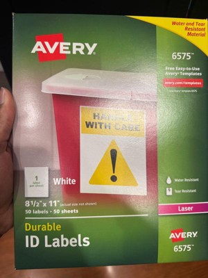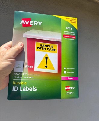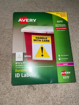 [This review was collected as part of a promotion.] The Avery #6575 label package includes 50 durable, weatherproof labels designed for laser printers. Each label measures 8.5” x 11”, covering a full sheet, making them ideal for creating custom signs, shipping labels, or large-scale organizational stickers. These labels are made with TrueBlock® technology, which completely covers everything underneath—so you can reuse boxes without old labels showing through. They resist water, UV, scuffing, and tearing, making them perfect for indoor and outdoor use. Compatible with Avery Design & Print software, these labels offer convenience, flexibility, and professional-quality results.