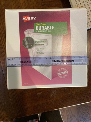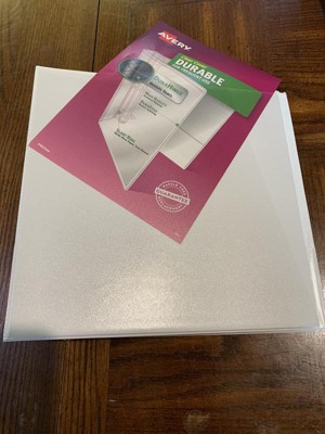Make sure important paperwork stays with you for the long haul by storing it in this Avery 17022 Durable View Binder in white. This 1.5 inch 3 ring binder offers more protection than basic binders with its tear-resistant DuraHinge spine and flexible DuraEdge split-resistant edges. Inside, back-mounted rings ensure pages lay flat and turn easily. There’s even extra storage with two interior pockets made of nonstick material that won't lift or transfer ink, keeping documents neat and clean. Each ring binder features a 2.1-inch spine and 1.5-inch slant rings that hold up to 375 sheets. Perfect for use as a report binder, recipe binder, school binder, card binder, presentation binder, photo album, and more. No matter what you use it for, you can easily personalize your own custom binder using Avery Design & Print and the available cover binder templates, fonts, and designs.